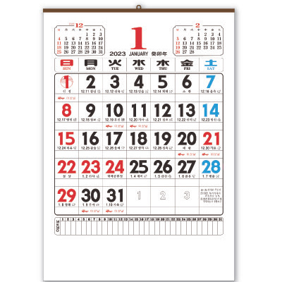 | 기타사항 | •Size : 460×670 •내지 : 100g 모조 •수량 : 100부이상 •먹1도인쇄 •300부 이상 3도 인쇄 가능 ※캘린더 디자인이 변경 될 수 있습니다. |